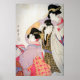 Aproveite esta bela reprodução do impressão de 1805 para os blocos de madeira "Two Geishas with a Tipsy Client", do artista japonês Kitagawa Utamaro. Ukiyo-e ("quadros do mundo flutuante") é um gênero de impressões japoneses de madeira (ou madeira) e pinturas produzidas entre os séculos 17 e 20, com motivos de paisagens, histórias da história, teatro e bairros de lazer. É o principal gênero artístico da impressão em bloco de madeira no Japão. A loja Floating World no Zazzle restaura meticulosamente esses tesouros históricos às suas verdadeiras cores e corrige problemas básicos de envelhecimento. A textura e a cor do papel são mantidas porque revelam a beleza envelhecida dessas obras-mestras de arte.
