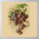 Ilustração de um monte de uva vermelha púrpura pendurada na videira com folhas, sobre fundo creme escuro ou bege, de uma pintura vindima da artista Catharina ou Catherine Klein, nascer 1861.