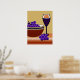 Poster em estilo Boho moderno, ilustração minimalista da uva em uma tigela de marrom, com um copo de vinho, em uma toalha de mesa listrada na Terra cores de bronzeado e terracota