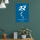 Lindo pôster azul infantil personalizável "A vaca pulou sobre a lua" com borda azul clara e uma linda vaca de desenho animado azul e branca sorrindo e uma lua e estrela azuis felizes. Um presente doce e adorável e divertido para meninos jovens. Ficaria lindo no berçário de um bebê. Se precisar de ajuda para personalizar seu produto, por favor entre em contato comigo através da minha loja e ficarei feliz em ajudar. Por favor, visite minha loja Molly Sky Designs para muitas ilustrações divertidas, fofas e retrô.
