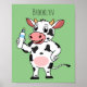 Esta vaca feliz está segurando uma garrafa de bebês. Desenhado no estilo de desenho animado.