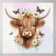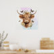 Poster Vaca Floral Boho Highland com Fundo Pastel