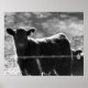 Fotografia original a preto e branco de uma vaca jovem a pastar num campo impresso num impressão de poster 16x20. Eu estava viajando pela área com minha câmera e parei para assistir alguns bezerros pairando em um campo. Ele olhou para mim enquanto eu tirava a foto. Uma fotografia original BohippianFinch.
