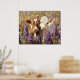Esta trabalho de arte encantadora mostra os adoráveis bezerros de vacas leiteiras em pé no meio de um campo vibrante de flores lupinas floridas. As cores suaves e a configuração de fazenda rústica criam uma cena de país charmosa e pitoresca.