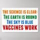 Hillary Clinton cita a vacinação: a ciência é clara: a terra é redonda, o céu é azul, as vacinas funcionam. Poster para sensibilizar para os surtos de sarampo e a pandemia de Covid. Vacinar os seus filhos para prevenir a propagação de doenças e doenças.