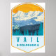 A vintage ski badge design of Vail Mountain ski area located in Vail, Colorado, United States USA.