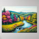 Mergulhe na beleza impressionante desta paisagem fantástica. Um rio sinuoso, refletindo o brilhante céu azul, esculpirá seu caminho através de um vale vibrante, culminando em uma encantadora queda-d-água miniatura. Os ribeirinhos estão ardendo com uma extraordinária variedade de árvores, suas folhagens se enterrando em tons de fúsia, ouro amarelo, turquesa, laranja profundo e feroz vermelho, criando um espetáculo de outono verdadeiramente único. Prados verdes esmagados pontilhados com flores silvestres coloridas esticam-se em direção ao horizonte, onde colinas gentis e verdes rolam sob um céu macio e convidativo. Esta trabalho de arte é uma celebração da paleta mais vívida da natureza, oferecendo um senso de paz, maravilha, e uma fuga para um mundo de cor pura e sem adulteração. Perfeito por trazer uma atmosfera alegre e serena para qualquer espaço.