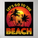 Vamos à Praia. Este acessório de férias é ótimo para levar com você na sua próxima viagem tropical, seja você indo em um cruzeiro ou visitando os trópicos no Havaí ou no Caribe. Este design é perfeito para suas férias de verão ou para a pausa de primavera, quando você está relaxando na praia e desfrutando de um coquetel tiki! Características de palmeiras perto do oceano contra um pôr do sol.