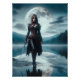 Uma vampira feminina na borda de um lago que a lua e ela se refletem na água, por martinspixs.