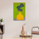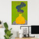 Esta impressão de arte cativante apresenta uma ilustração botânica moderna, com folhas azuis profundas brotando de um vaso amarelo de textura rica. Colocada sobre um fundo padronizado com uma camada verde harmoniosa, essa peça traz um toque vibrante, mas sofisticado, a qualquer espaço.