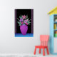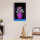 Pintura digital de flores coloridas imaginárias em um vaso roxo.