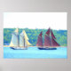 Estaleiros de madeira de velas vermelhas e brancas que navegam no Maine