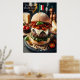 Mergulhe numa vista veneziana de sabores com este indulgente hambúrguer de Trufa Italiano. Uma fatia de carne macia, infundida com óleo de trufa preto delicado, é tocada com mozzarella fresco cremoso, tomate seco por película, e pesto de manjericão perfumado, todos enfeitados dentro a rolo de ciabatta mole. Uma pequena bandeira italiana acrescenta um toque de charme italiano, enquanto o parmesão velho e uma garrafa de Prosecco completam esta alegria culinária italiana.
