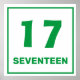 Verde número 17 sobre fundo branco com borda verde. Ajude o seu pequeno a aprender os números com este número 17 design.