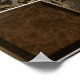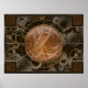 O meio desta design apresenta uma joia como uma janela olhando para outro mundo, cercada por uma série de engrenagens de relógio e engrenagens sobre um fundo marrom vermelho. Um estilo único e steampunk inspirado por Jules Vern.
