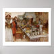 Pintura detalhada de um banquete sueco da véspera de Natal. Uma foto do século XIX de família e amigos juntos para as férias de Carl Larsson.