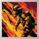 Poster Vetor Bombeiro com Fundo de Chamas