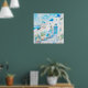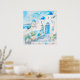Poster Viagem Art azul e branco mediterrânico de Santorin