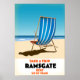 Leva uma viagem a Ramsgate, ao estilo de Kent vintage, ao estilo ravel poster art impressão de uma cadeira de retrô na praia arenosa.