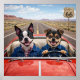 Luna, o Boston Terrier, e Louie, o JackChi, estão se divertindo em uma longa viagem sem destino com o teto solar aberto pela Nova México na histórica Rota 66.
