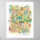 Poster Viagem mapa Kuala Lumpur amarelo Ásia ilustrativo