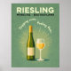 Sinta o espírito do Vale do Rio Mosel da Alemanha com esta impressão em estilo vintage de vinho Riesling. Localizado no meio da região vinícola da Alemanha, o Moseltal é um destino turístico privilegiado, cheio de paisagens bonitas, herança alemã e cultura do vinho.