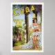 Linda poster de viagens vintage publicando Cuba como a "Ilha Feriada dos Trópicos". Mostra uma bailarina espanhola com um belo vestido branco.
