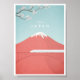 Poster de viagens de estilo Vintage do Monte Fuji, Japão com o trem icônico de bala no primeiro plano. O texto diz Visite o Japão. Imagem original desenhada e digitalmente reproduzida por Henry Rivers para Poster de viagens Co.