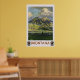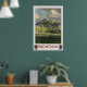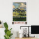 Esta poster de viagens vintage mostra uma máquina a vapor com automóveis de passageiros que passam pelas montanhas de Absaroka em Montana.