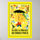 Poster de viagens vintage de Portugal. Não chove em Portugal, mas os turistas despejam.