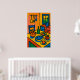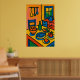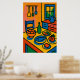 Brighten your space with this vibrant kitchen still life poster, showcasing a colorful array of fresh fruits, utensils, and a cozy dining setup. This modern art print captures the essence of a cheerful domestic scene, perfect for enhancing home decor, inspiring culinary creativity, or adding a touch of warmth to kitchen and dining areas.