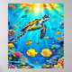 Experience the emotional beauty of the ocean depths with this stunning art print, showcasing a majestic sea turtle gliding over a vibrant coral reef. The artwork is an underwater paradise, bursting with tropical color palettes—from sunlit blues to neon corals and yellow fish—perfectly capturing the lively energy of marine life. This piece instantly adds a calming yet colorful focal point to any room. The unique design was first generated by advanced AI and then meticulously edited by a skilled artist to enhance its uniqueness, texture, and creative depth. This ensures you receive a high-quality, distinctive piece of art. Perfect for ocean lovers and beach-themed style. Place your order today and embrace the joy of owning this beautiful aquatic scene!