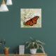 Belo poster com uma borboleta Viceroy alimentando-se de uma flor branca de colza Myrtle no jardim de verão.