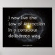 Esta poster afirma: Eu vivo agora a lei da atração de uma forma consciente e deliberada. Essa crença crescerá com paciência e repetição.