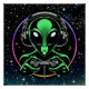 Alienígena extraterrestre tocando videos games com um controlador e fones de ouvido. Excelente para crentes e fãs da Ufologia.