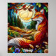 Este design vibrante replica a aparência do vidro manchado e apresenta uma belíssima raposa vermelha caminhando entre as flores.