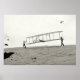 Imagem delicada negativa de vidro do Wright Brothers Glider primeiro voo no Gatinho Hawk, Carolina do Norte, em 1902. Edição mínima para preservar o original autêntico. O planador Wright foi reconstruído para este voo com um leme de solteiro. Wilbur Wright, à esquerda, e Dan Tate ajudam o avião como Orville Wright está propenso aos controles.