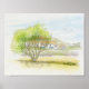 Esquema de aquarela de uma vila portuguesa no Algarve perto de Burgau