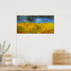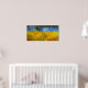 Wheat Field com Crows, de Vincent van Gogh, é uma pintura típica de paisagens de apos impressionismo de arte. Uma fazenda com um campo de trigo com pistas de pneus ou uma estrada pelo centro. Um bando de pássaros, corvos negros, voam no céu escuro da noite. Wheatfield com corvos é uma das pinturas mais famosas de Van Gogh e provavelmente a mais sujeita a especulação. Foi pintado em julho de 1890, nas últimas semanas de vida de Van Gogh. Sobre o artista: Vincent Willem van Gogh (1853-1890) foi um dos mais famosos pintores Post Impressionistas de sua era. Seu trabalho foi muito notável por sua beleza áspera, honestidade emocional e cor ousada.