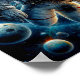 Um astronauta solitário flutua no espaço contra o nítido pano de fundo da Terra e numerosos corpos celestes. Cores vibrantes e detalhes intrincados capturam a vastidão e mistério do universo.