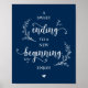 Vinhas Fazendas Russas, em Marinho Azul, Poster de deserto do Partido Recepção de casamento, um final doce para um novo começo.