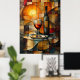 Este sofisticado trabalho de arte de inspiração em vidro, com coloração, capta uma vida tranquila de uma garrafa de vinho e de um vidro, iluminado por um brilho radiante do ouro. A paleta quente de âmbar, vermelho e ouro combinada com padrões geométricos cria um eterno e uma peça decorativa elegante. Ideal para amantes de vinho, entusiastas de arte e elegante decoração doméstica.