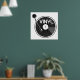 Ilustração vetorial, a preto e branco, de um LP de vinilo, gravado num leitor de discos ou de mesa-redonda. Um design para pessoas que adoram o formato de gravação vinil, D'j.s e outros fãs de música.