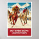 Anúncio de corridas de cavalos Vintage 1924 para uma pista nas montanhas. Nota: O banner vermelho + texto abaixo foi adicionado por nós. Entre em contato conosco se estiver interessado em texto personalizado, tamanhos de poster personalizados ou se você quiser esta ilustração em outros objetos Zazzle. Principais cores: vermelho, azul, branco, castanho
