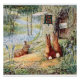 Este é um poster bonito para o quarto do seu filho. Numa floresta pontilhada de bluebells, três coelhos aguardam antes da Caneta Inn, que tem a porta na base de uma árvore e mostra teias de sopa e o sinal "Para Deixar". Esta ilustração é de um livro infantil intitulado Cecily Parsley's Nursery Rhymes, escrito e ilustrado por Beatrix Potter, e publicado por Frederick Warne & Co. em dezembro de 1922.