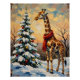 A whimsical vintage Christmas artwork featuring a giraffe in a snowy savanna decorated for the holidays. Warm and nostalgic, perfect for unique festive décor.