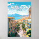 Design de viagem de vetor retrô de Málaga. Escondida ao longo das margens do sul da Espanha, beijadas ao sol, Málaga acena os viajantes com sua cativante mistura de história rica, cultura vibrante e beleza natural impressionante.