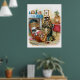 Poster Vintage Engraçado Gato e Gatinhos No Berço
