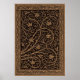 Este belo design de artes e artesanato mostra poços giratórios de folhas florais, em castanho e preto. O padrão floral é do final dos anos 1800.