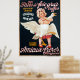 Esta imagem é de um anúncio feito em francês foie gras. Uma jovem está segurando um ganso gordo. Vintage Label Art são etiquetas em papel que têm sido usadas desde o início dos anos 80. Eles foram introduzidos na América por artistas europeus, e esse processo de impressão ficou conhecido como litografia. Esta foi uma das primeiras formas de arte comercial.